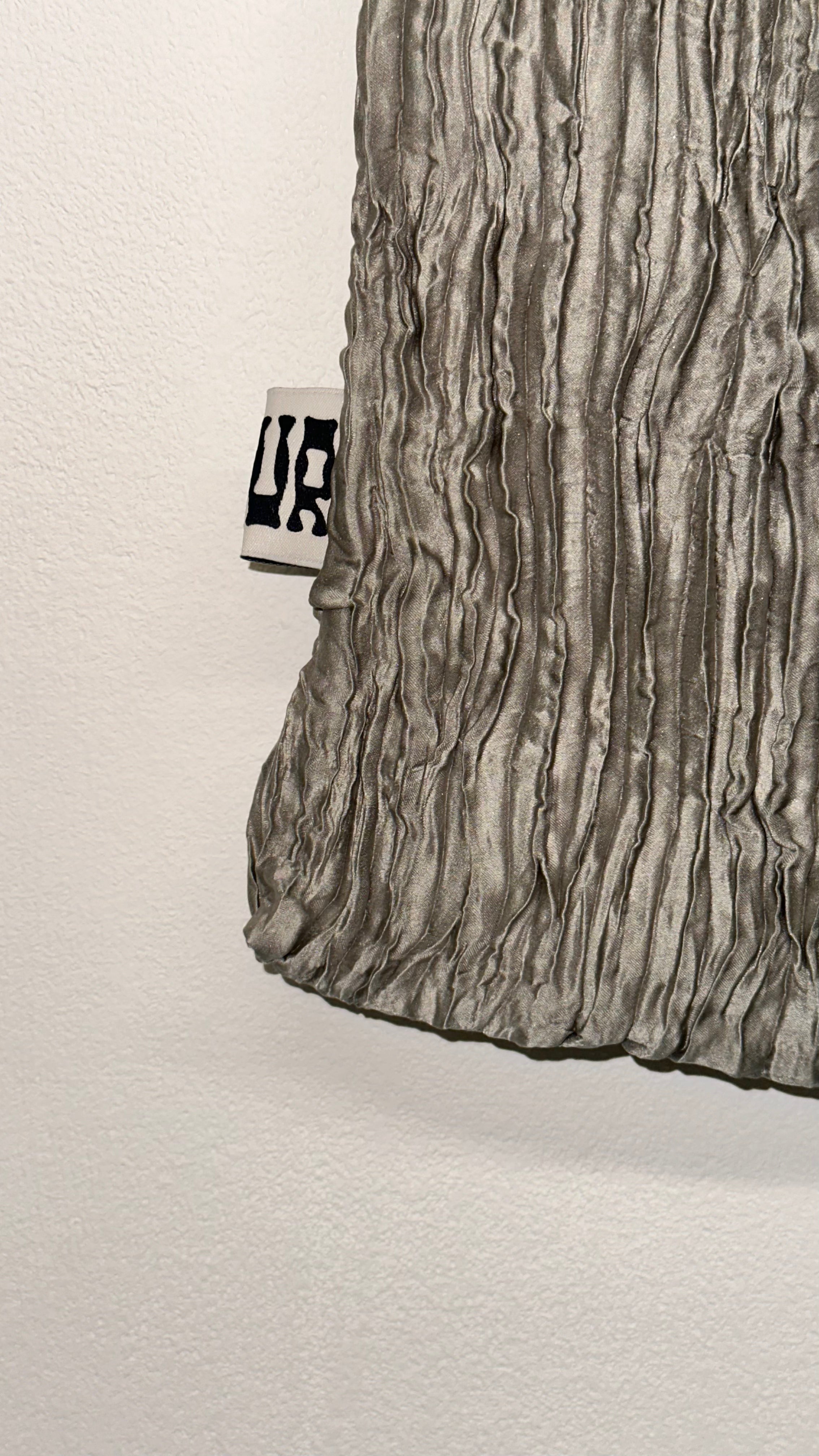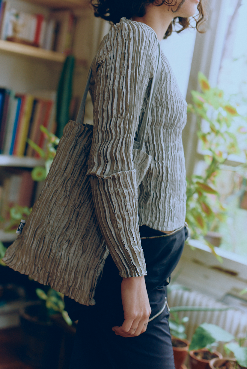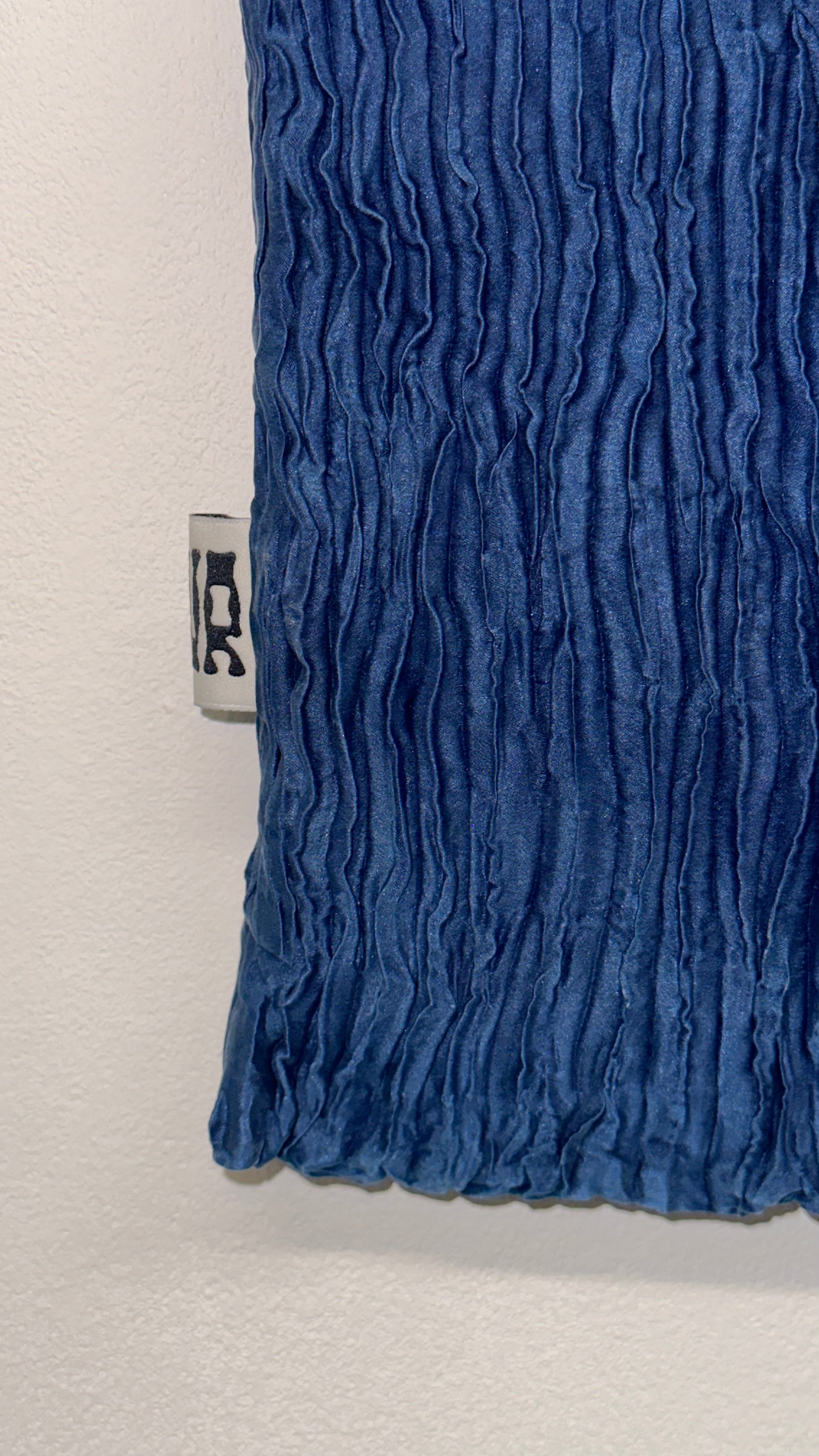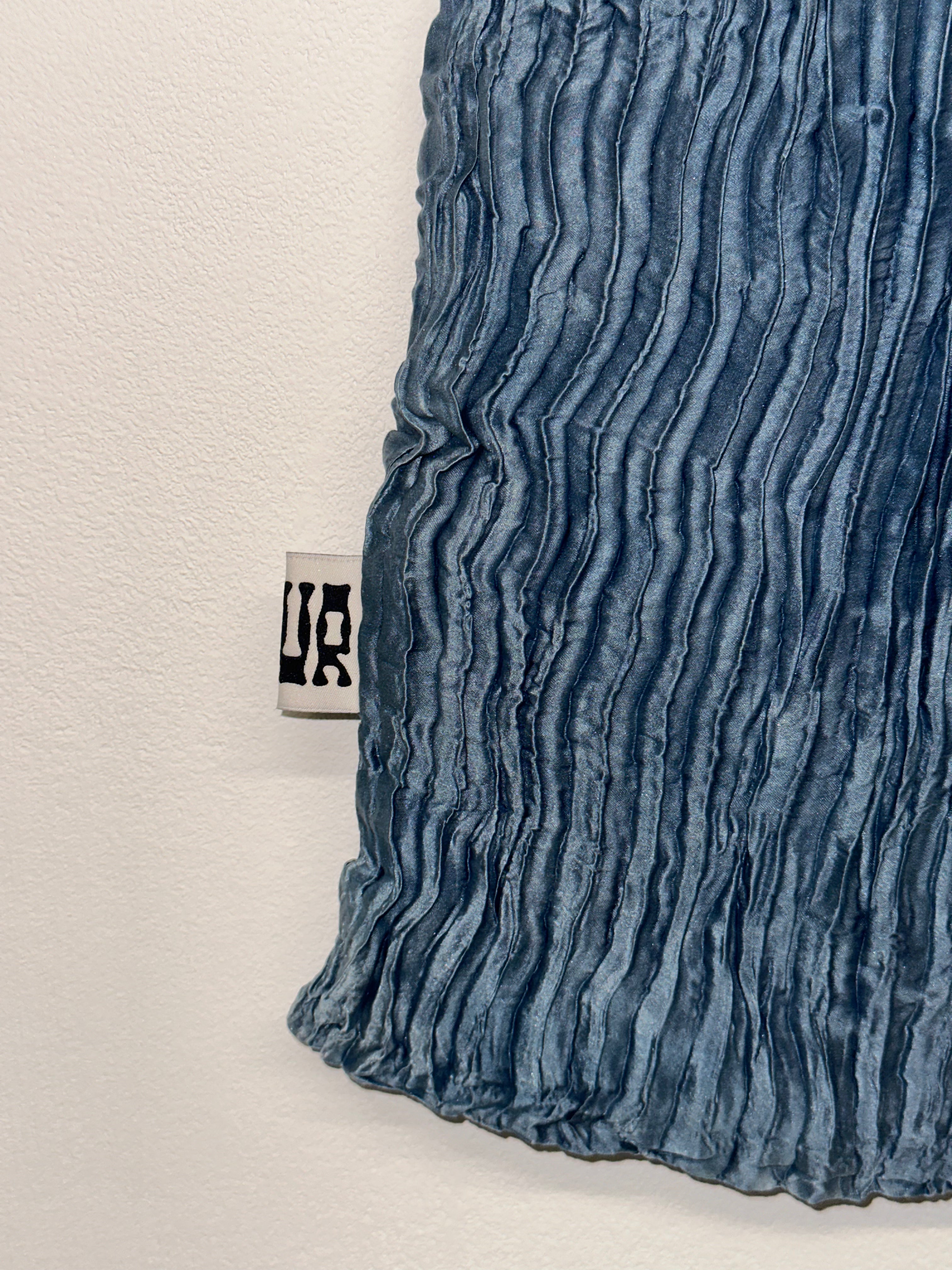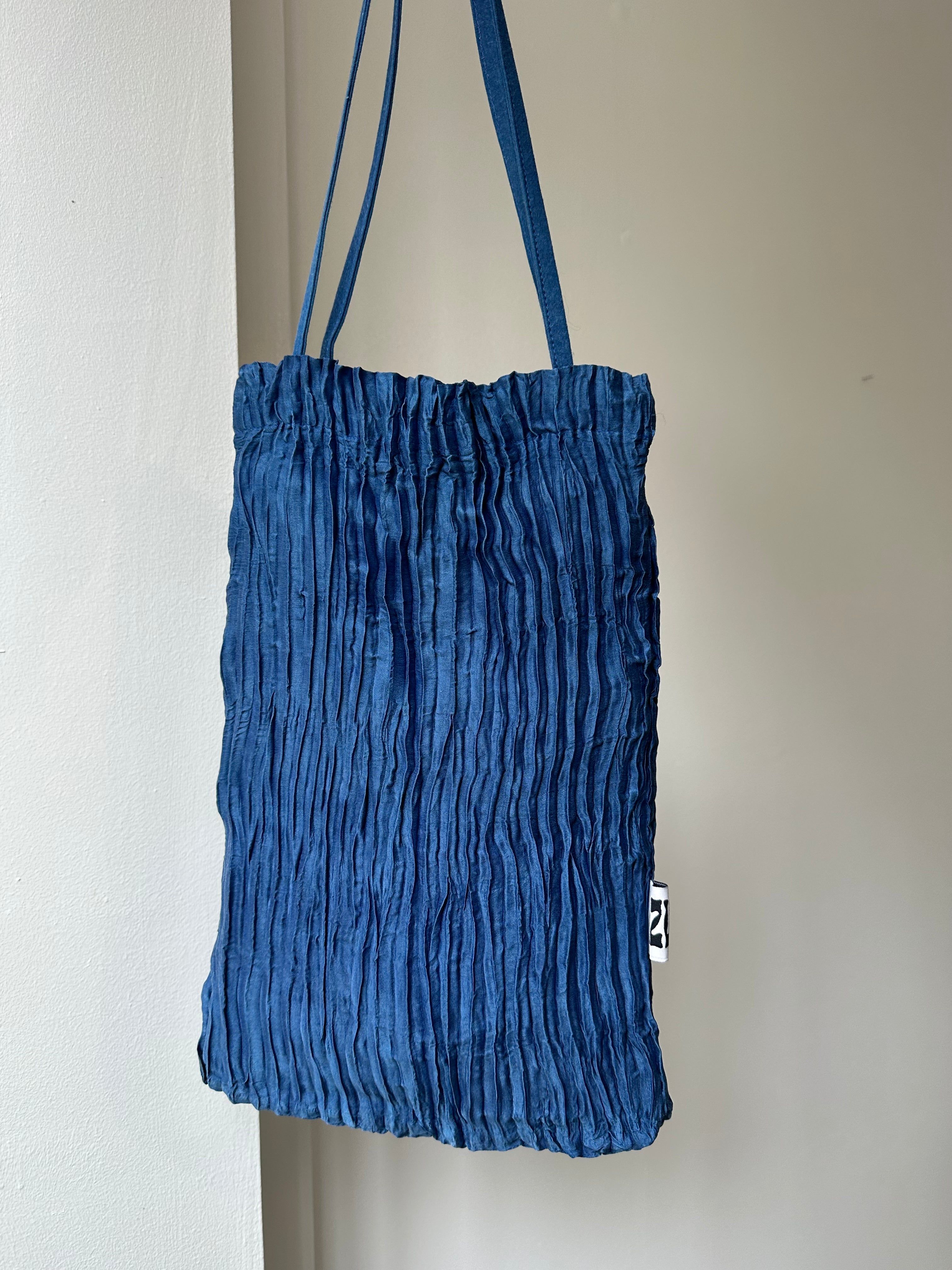 plissé satin silk bag with the Azur label and a cotton-linen lining