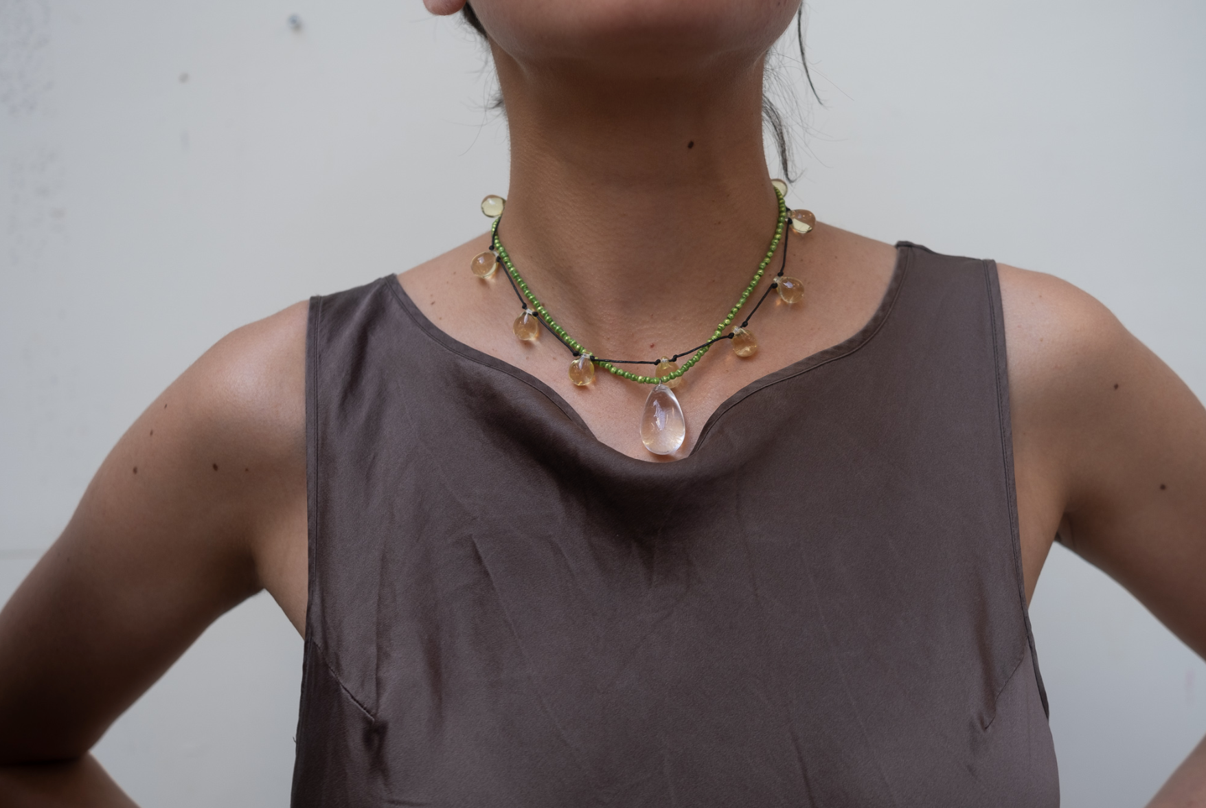 beaded necklace made of vintage blown glass beads* and a czech glass pendant