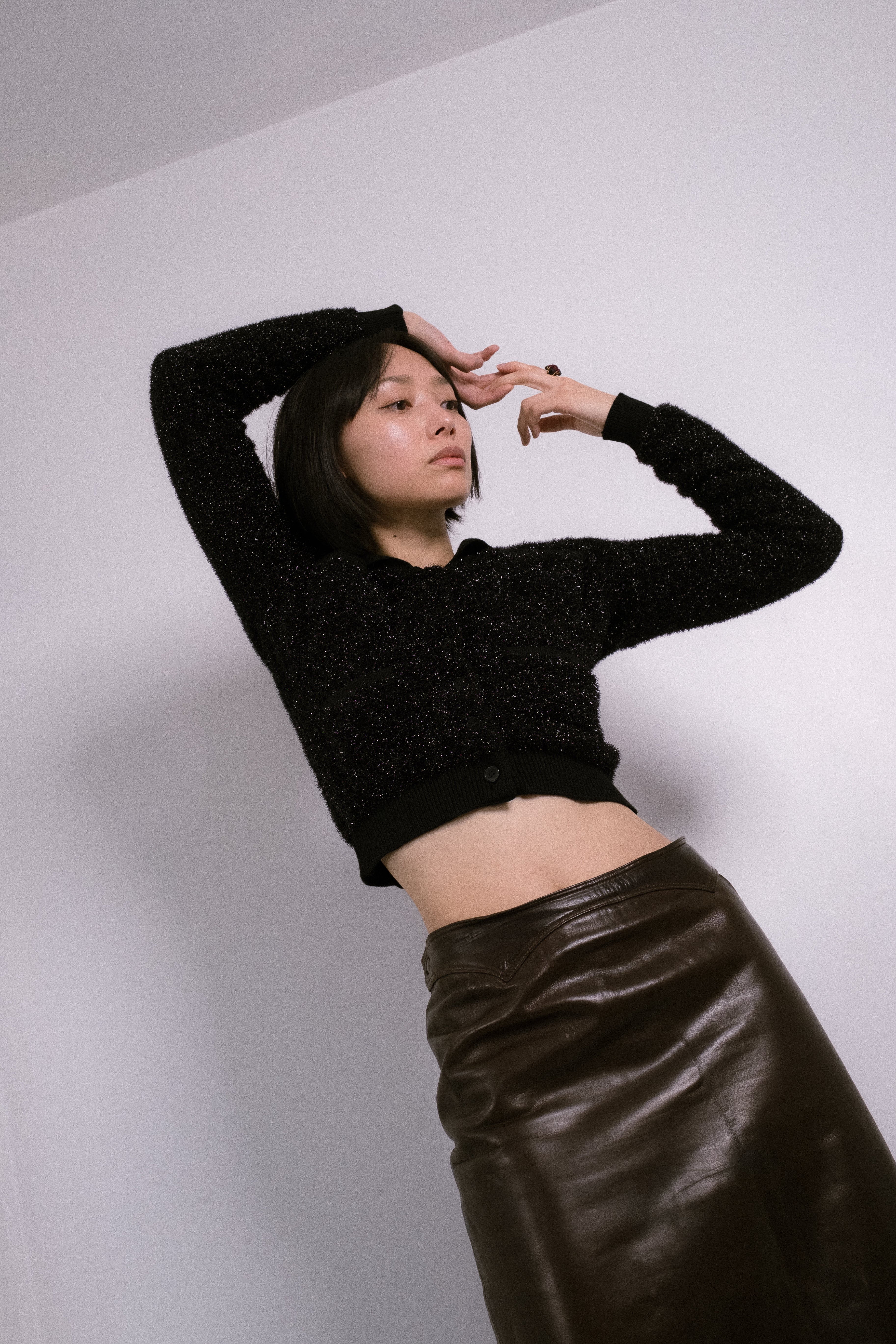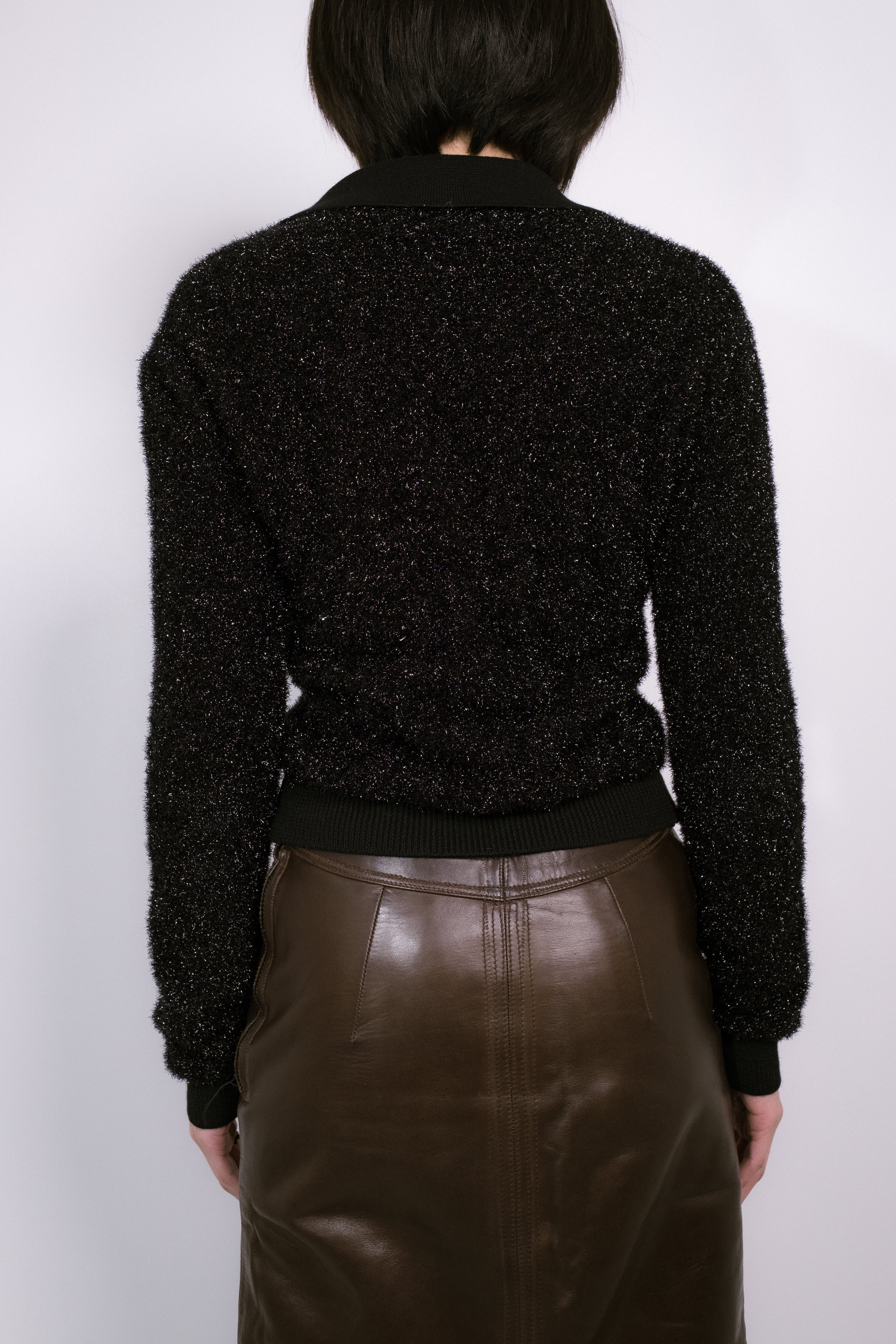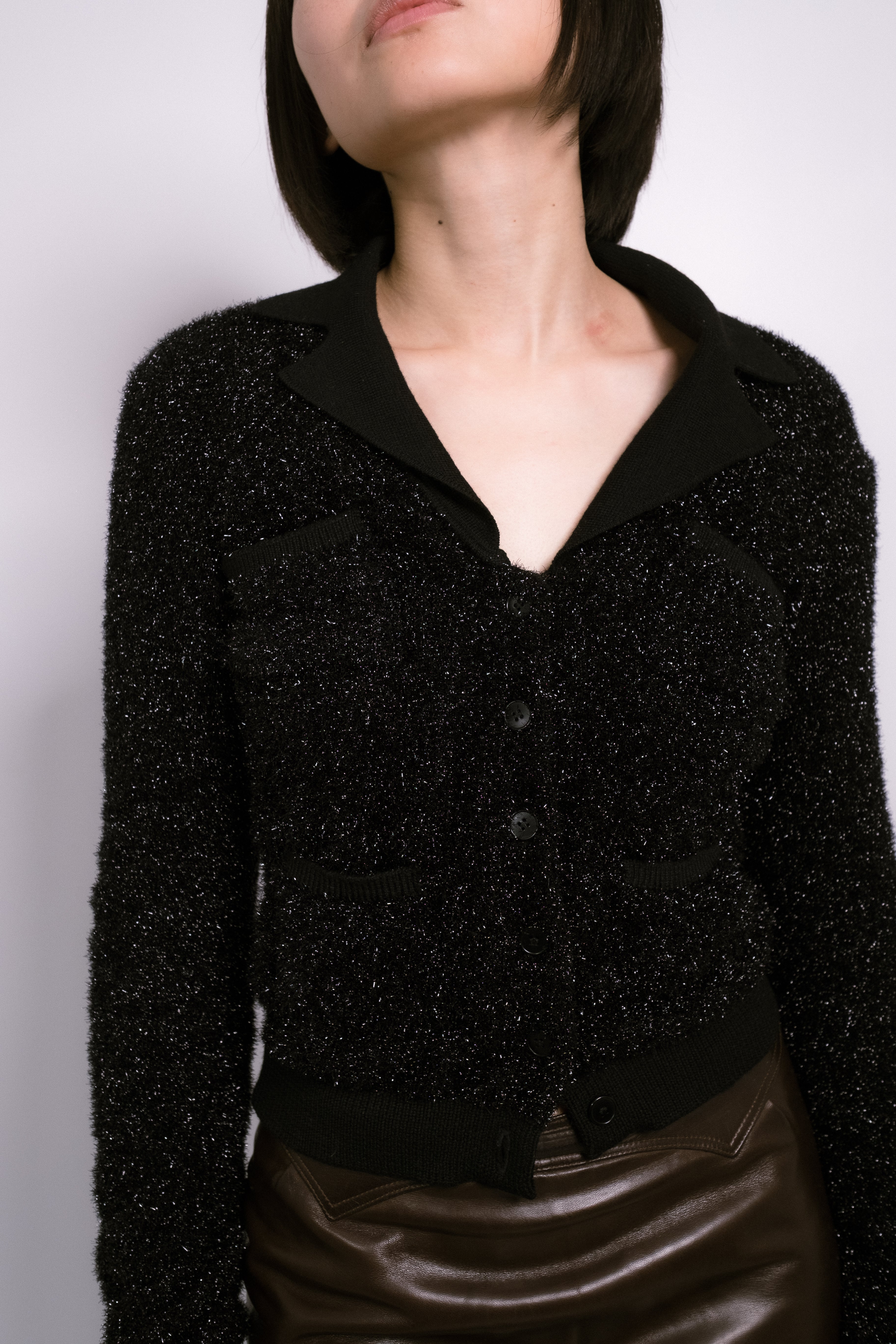 Black cardigan with shimmering fabric, collar & wrist polo jersey-like details