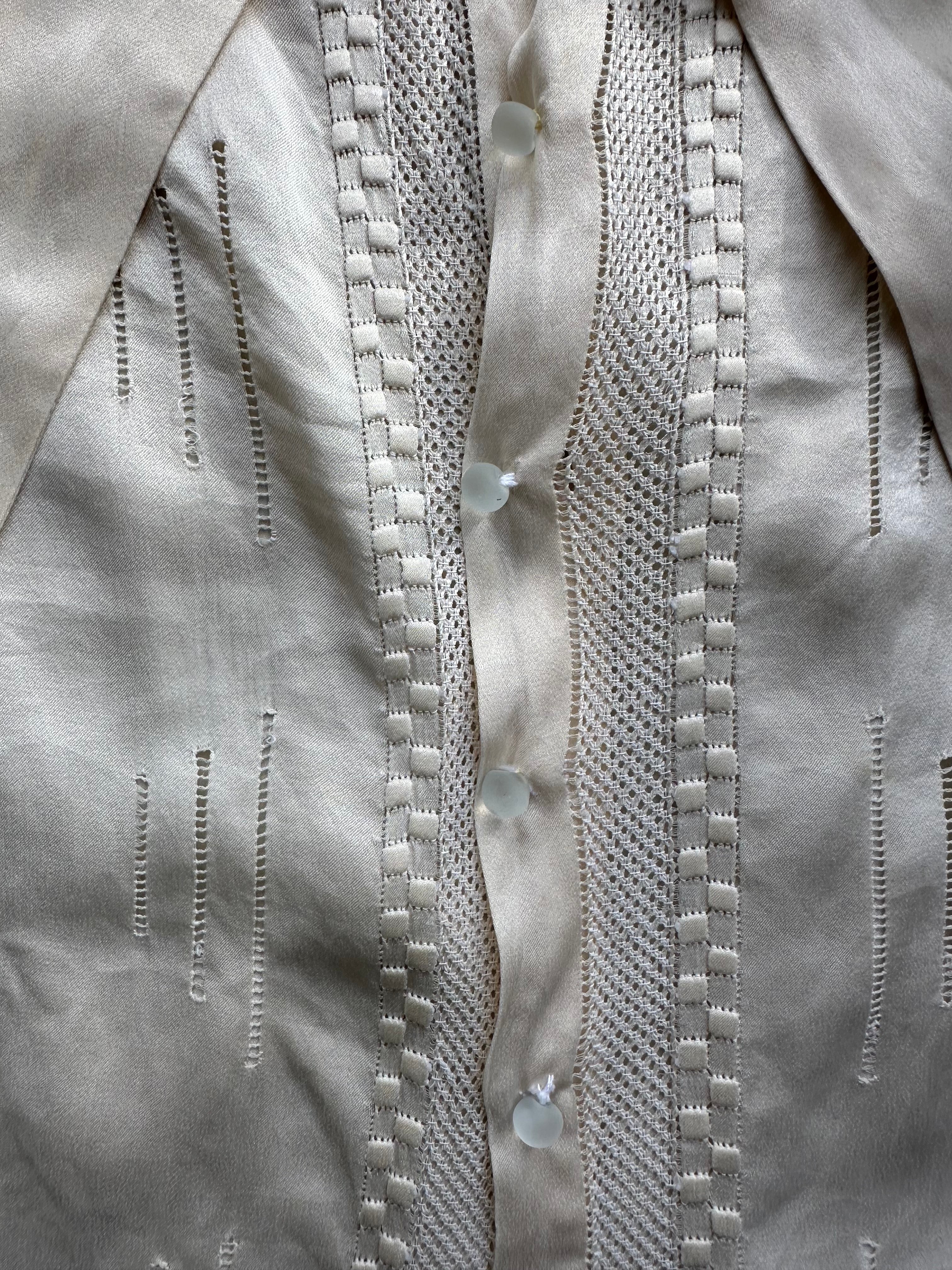delicate vintage blouse from the 1930s in soft ivory silk with a refined tie collar and gentle puff sleeves