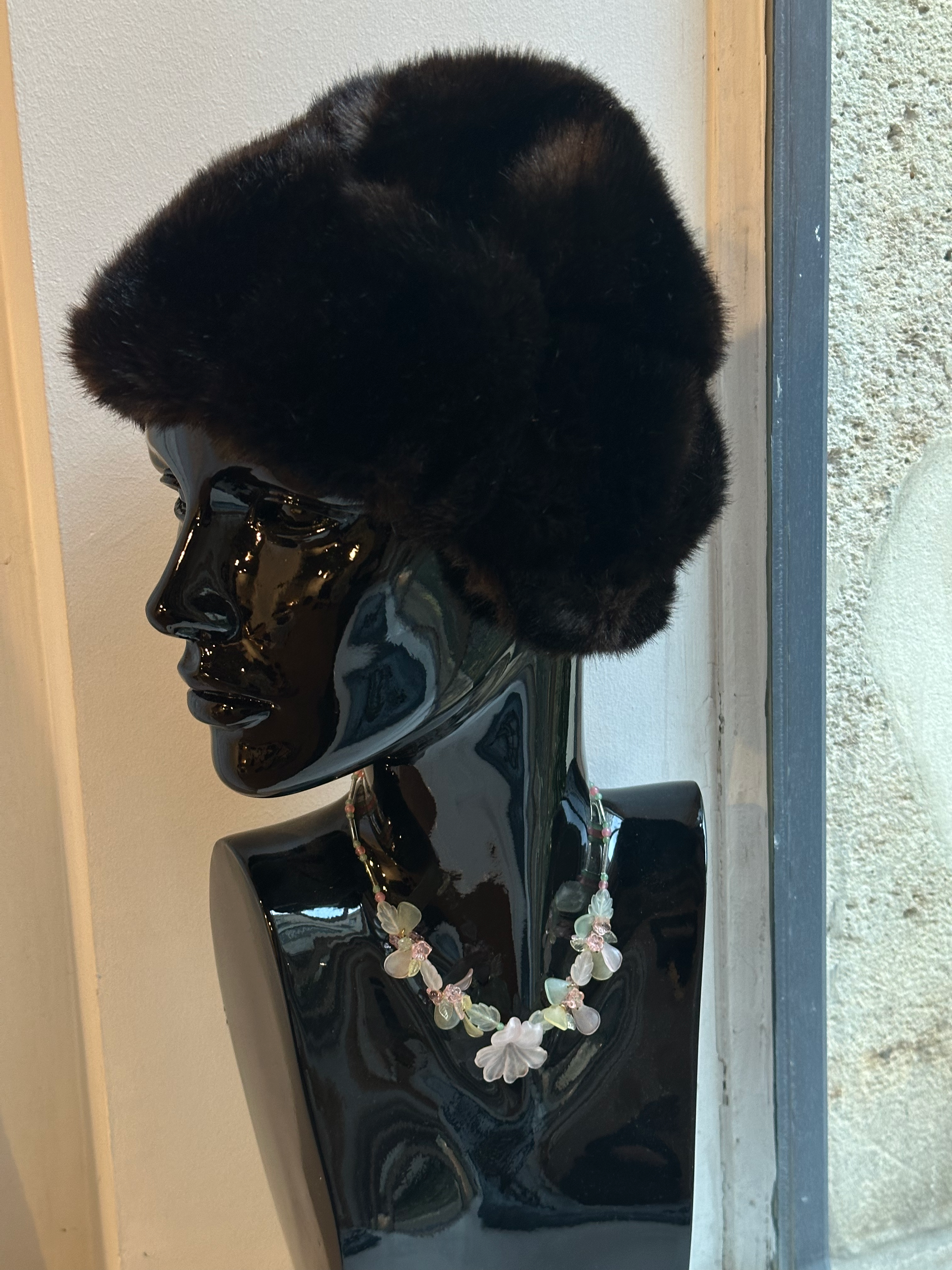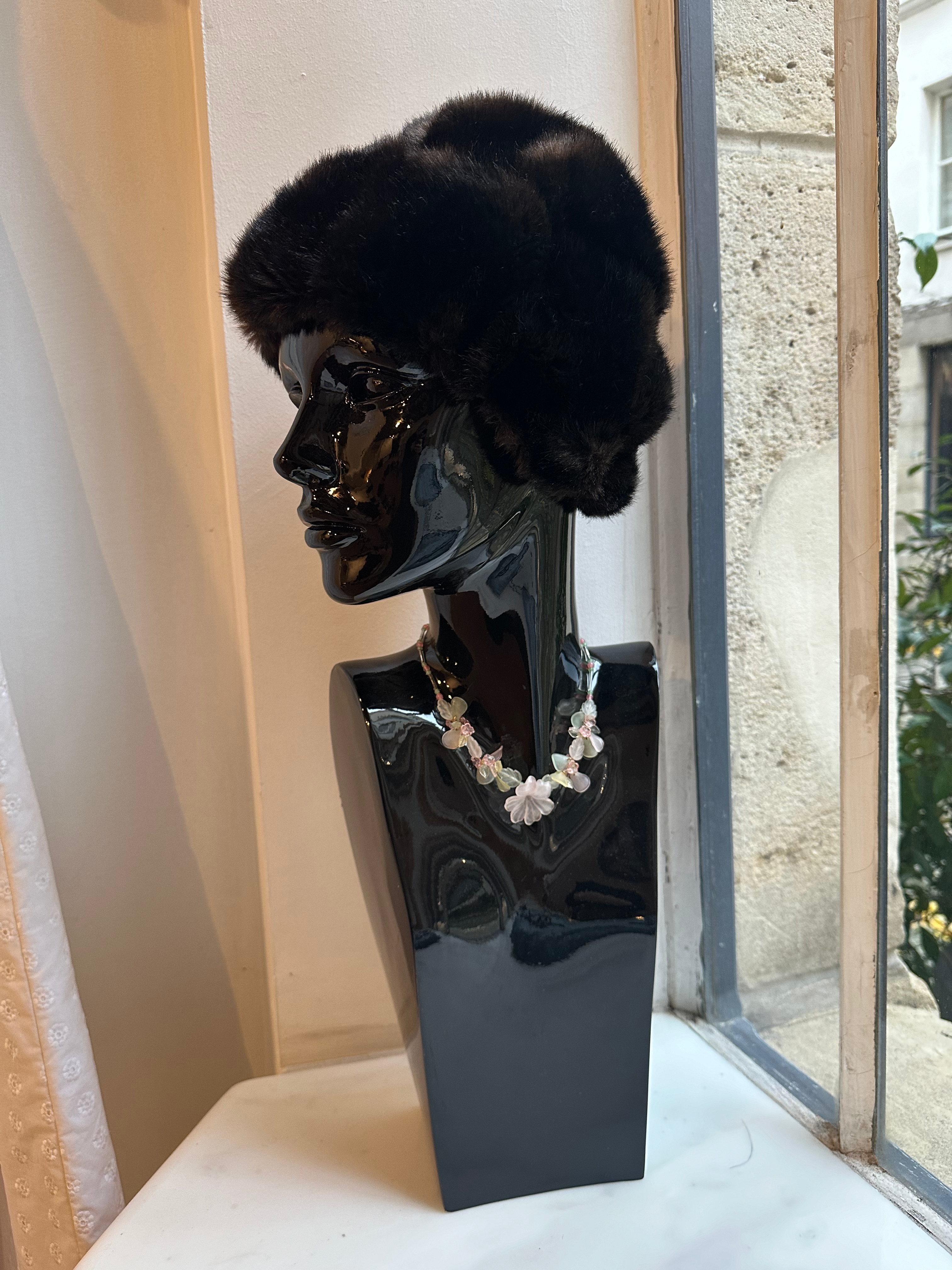 brown fur russian style hat, vintage, real mink fur, handmade